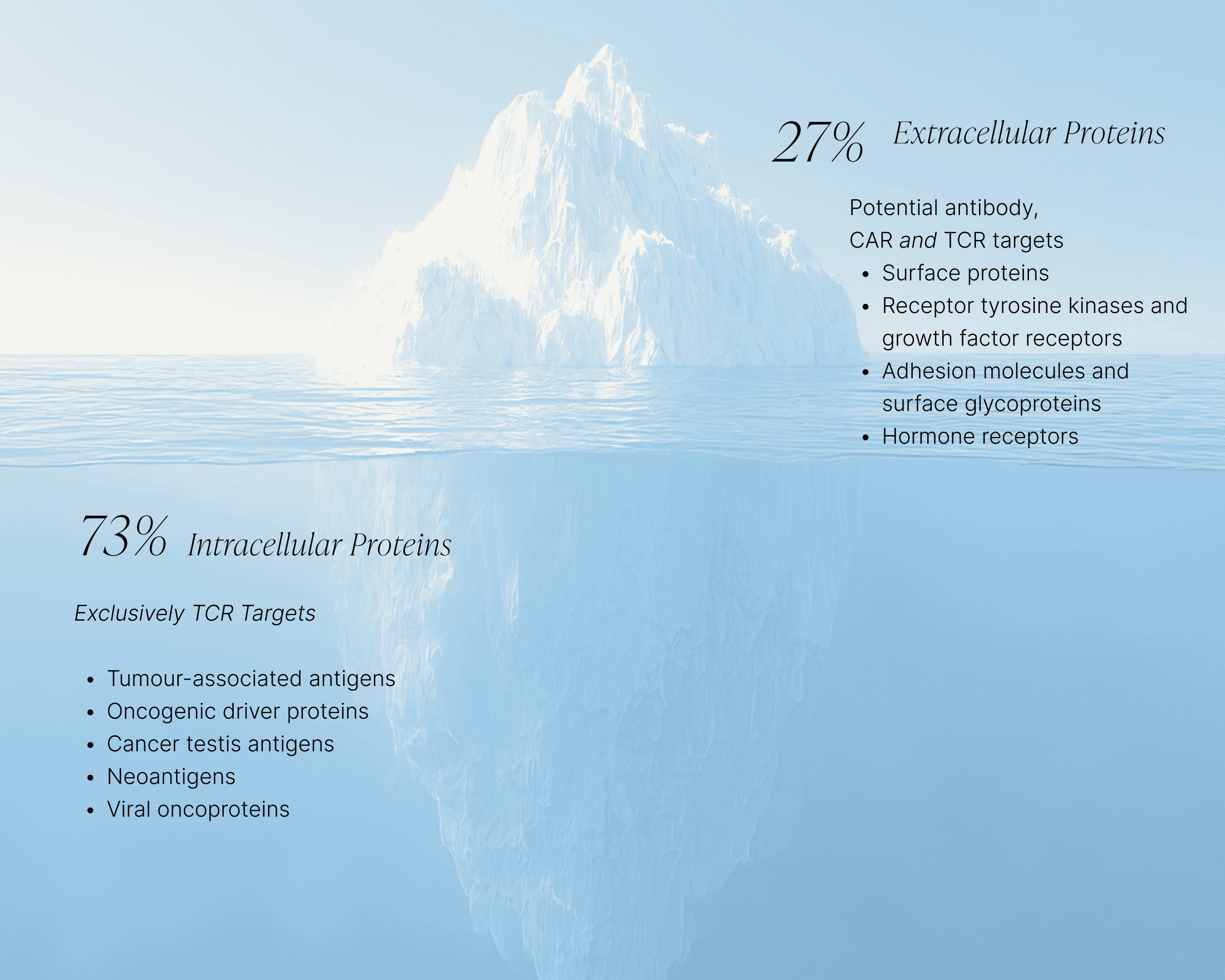 What makes TCRs such a commercially attractive platform is that they can - in principle - target any intracellular protein. The targetable landscape is therefore much larger than it is for small molecules and antibodies, which are for the most part limited to surface-expressed proteins only.